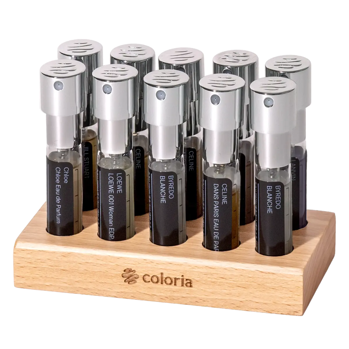 アトマイザー、散らかっていませんか? 気付けばバラバラになりがちなアトマイザーを、オシャレにすっきり収納。 最大10本をキレイに並べられる専用スタンドです。 使いたい香りがすぐに見つかって、香り選びがもっと楽しくなります。 お部屋のインテリアにも馴染む、ナチュラルウッドのやさしい風合いです。