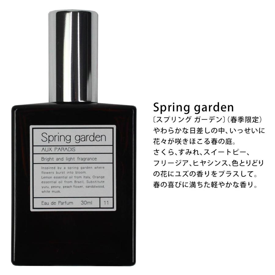 春の庭と言うことでフローラル主体の香りかと思いきや、AUX PARADIS(オゥパラディ)らしい柑橘調の爽やかさがちらり。