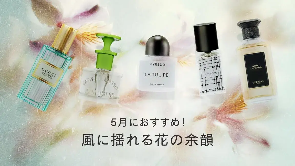 街角に春の名残を感じつつ、新緑の風がやさしく頬をなでる5月。 そよぐ木々や花々の余韻を感じながら、最後に纏うのはそっと寄り添う香り。 ほんのり甘く、軽やかに漂う花のニュアンスは、日常の中の小さな特別を映し出します。 そよ風に揺れる花を思い浮かべながら、あなたの物語にそっと彩りを添えてみませんか?